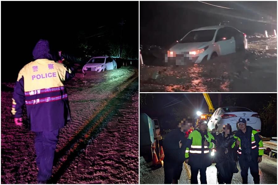 一對來台觀光的以色列夫婦,4月4日晚間駕車行經台七甲線35.9公里處時,因大雨道路坍方導致車輛受困泥沼,三星分局南山派出所獲報,立即由副所長張文欽與警員蔡欣峯前往救援,並聯繫相關單位協助脫困,結束一場雨夜驚魂記。