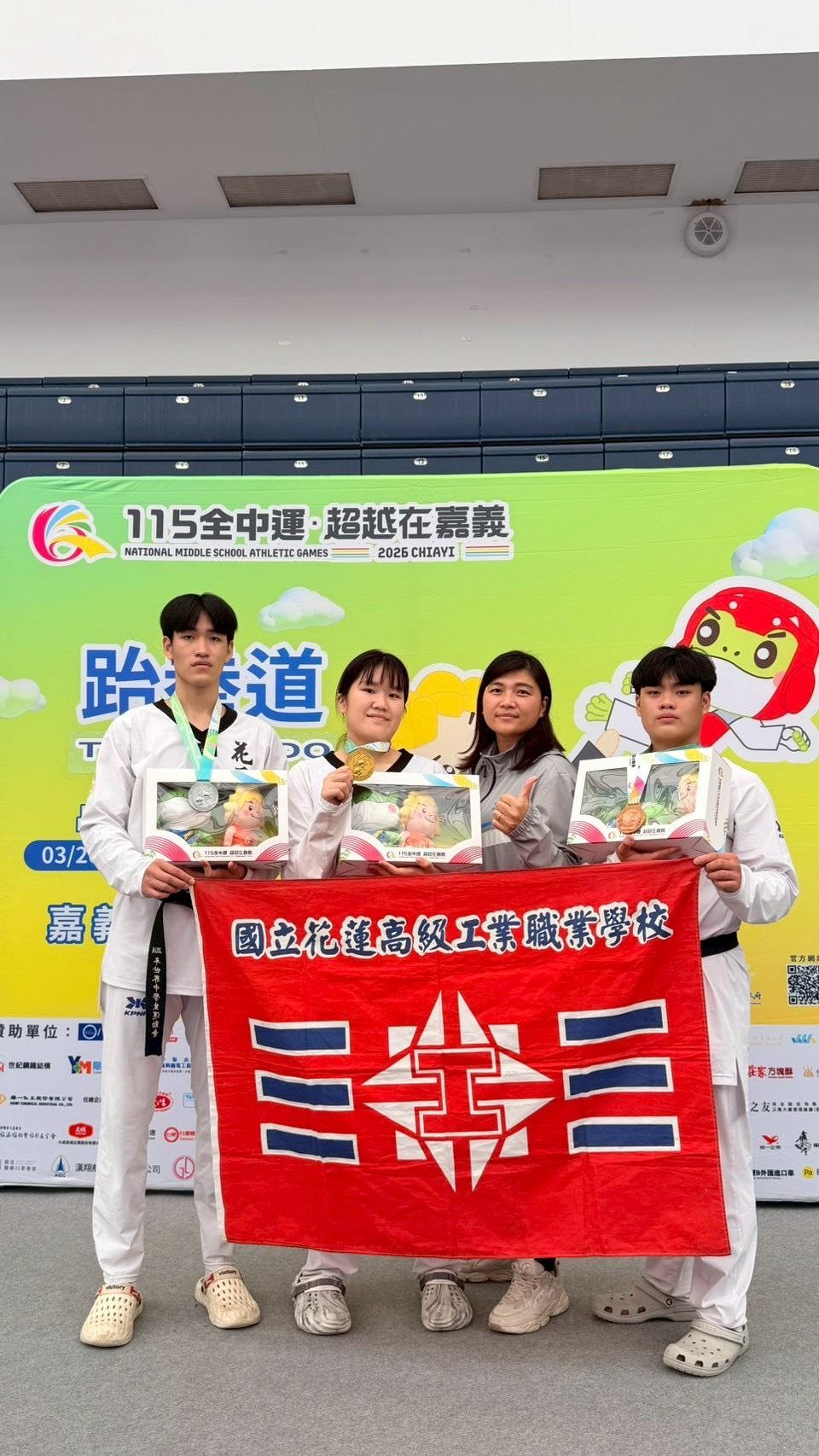 115年全國中等學校運動會跆拳道對打項目近日落幕,花蓮高工代表隊4人出征,3人站上頒獎台,勇奪1金1銀1銅。其中,金牌得主張紫芸明(8)日將代表中華台北前往烏茲別克出戰2026年世界青年跆拳道錦標賽。