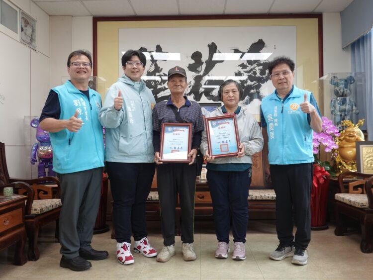 花蓮市長魏嘉彥由民權里長劉原良、清潔隊長吳慶展陪同,頒狀感謝兩位市民。魏嘉彥表示,城市的美好不僅來自政府的努力,更仰賴每一位市民的參與。李溪忠與黃淑芬長期無私奉獻,主動維護環境整潔,令人感動。