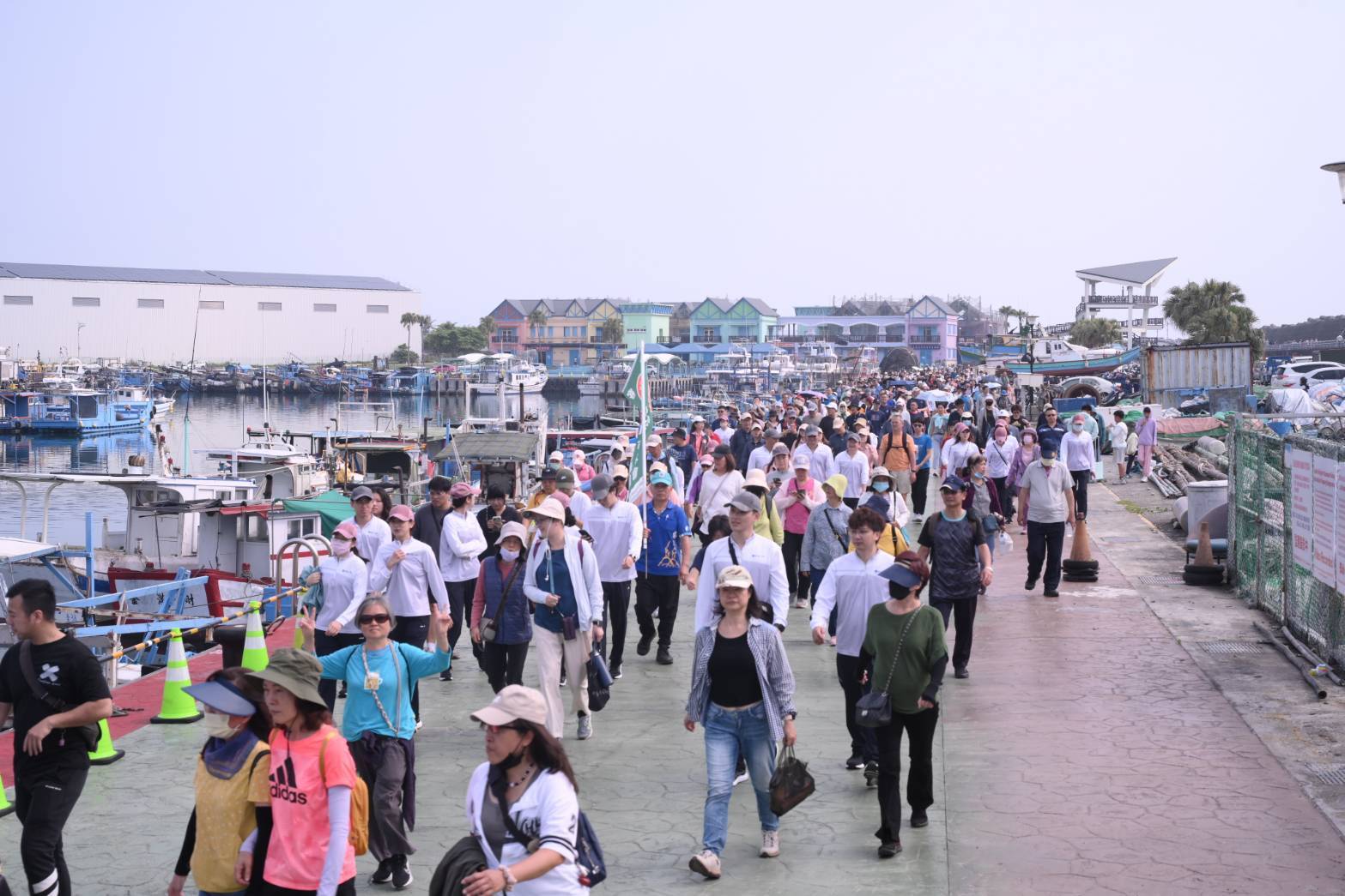 ▲不少人親子健走之餘,不忘在漁港四周留下回憶素材。