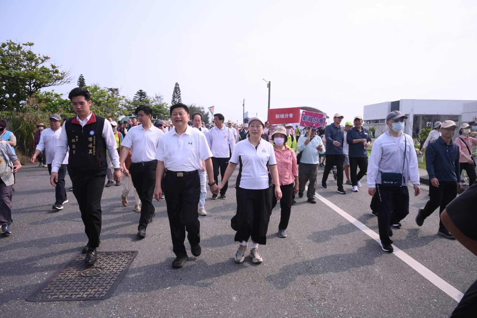 ▲立法委員傅崐萁(中左)與縣長徐榛蔚(中右)參與「減碳呼吸,健走趣」活動。(圖/花蓮縣政提供,下同)