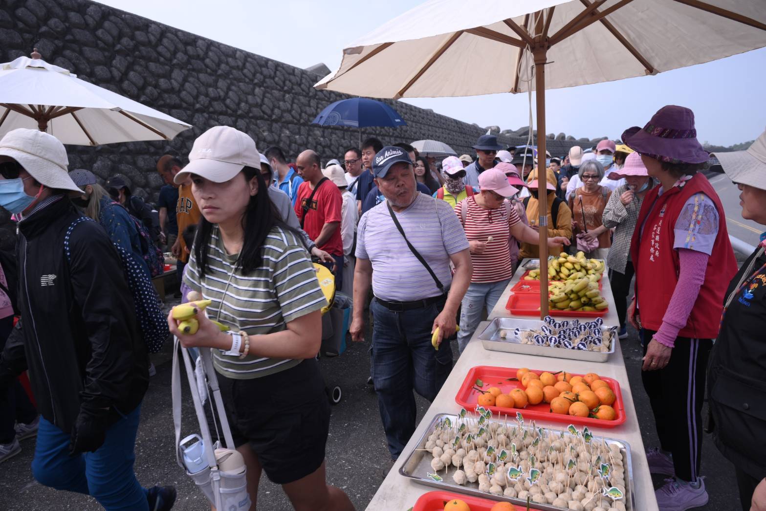 ▲特色市集吸引不少人健走之餘品嘗在地美食、採買新鮮漁貨。