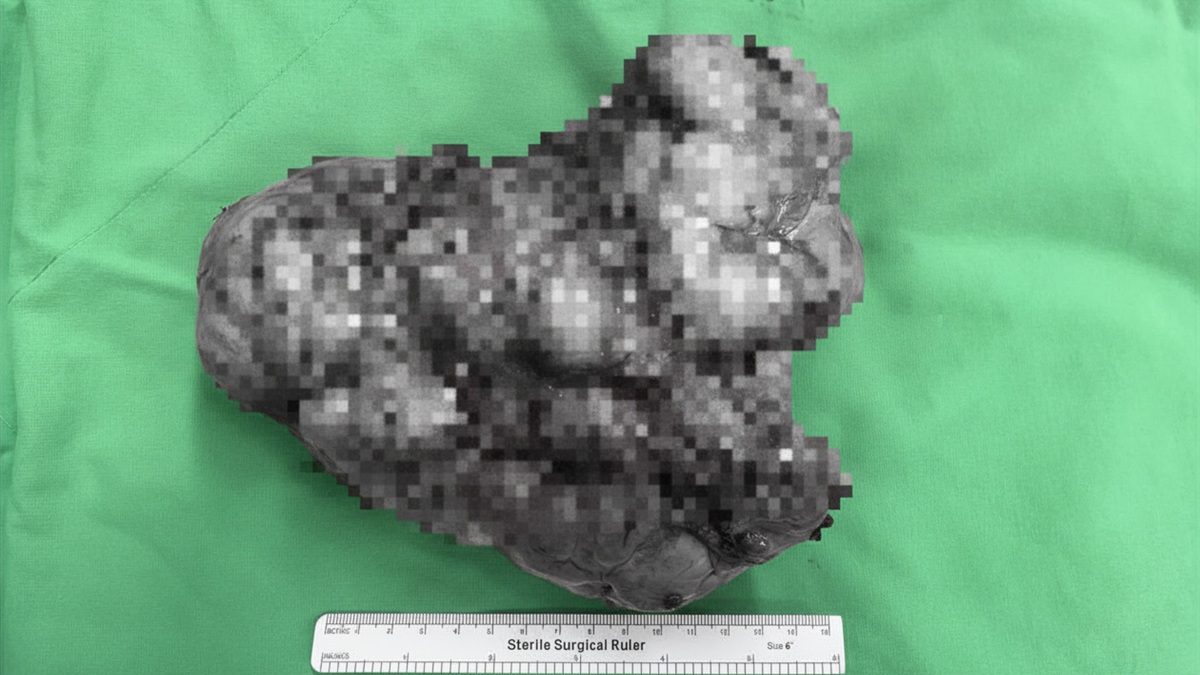 跨科會診後,轉由在員榮駐診的胸腔外科醫師、秀傳醫院李佳穎副院長手術。因腫瘤超過20公分,且侵犯肺葉及心包膜,因此特用胸腔鏡輔助迷你開胸手術(VATS-assisted minithoracotomy )以完整切除。