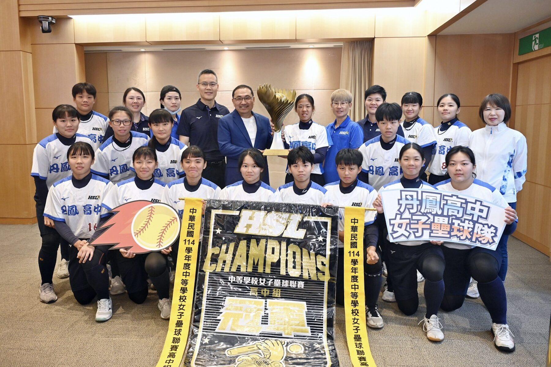 114學年度中等學校女子壘球聯賽(HSL)歷經近四個月奮戰,高中女子組由新北市丹鳳高中勇奪冠軍,氣勢如虹、重返榮耀。(15)日於市政會議由隊長何佩珊代表獻上冠軍金盃,新北市長侯友宜親自頒發100萬元培訓金,肯定球隊拼戰精神,並期勉持續挑戰更高舞臺,為新北再添光榮。