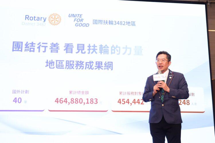 總監張文瀚表示,在現代社會中,「團結行善」不應只是點狀的呈現,而應是系統性的傳承,他認為扶輪社友應發揮熱情與服務的DNA,透過「創新」與「傳承」建立強大的夥伴關係;這數位平台正是讓扶輪力量永續,邁向台灣永續、世界更好的橋樑;根據首度公開的量化數據,3482地區已累積國內外超過500件服務計畫,捐款金額突破新台幣四億元大關,實質幫助超過50萬名弱勢群體,更有超過5萬人次扶輪志工參與其中。