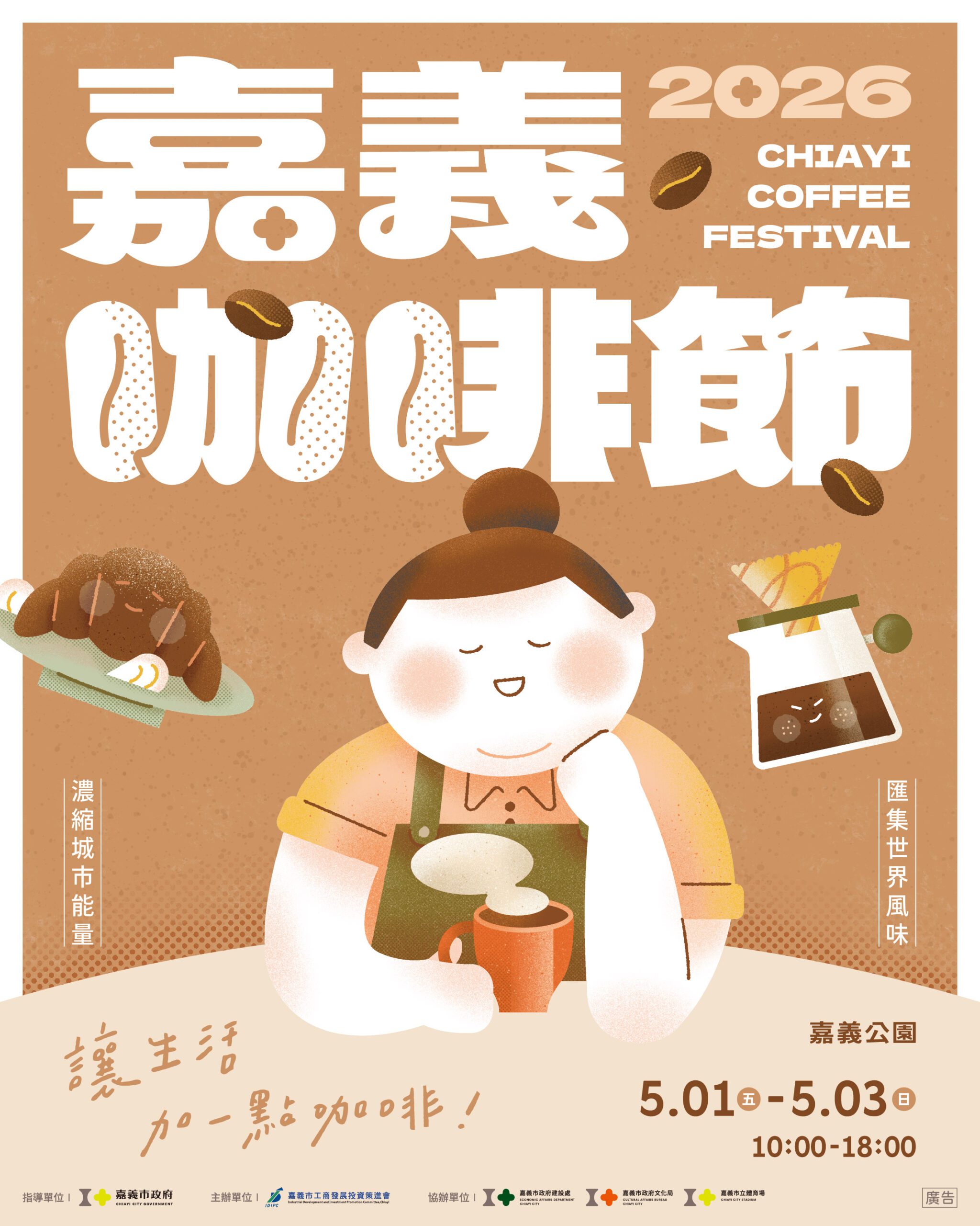 2026嘉義咖啡節期間將集結超過150家海內外品牌,並規劃國際咖啡賽事與市集展售等多元內容,歡迎全國民眾前來嘉義市,從跑店集點開始,走進嘉義市的咖啡日常。