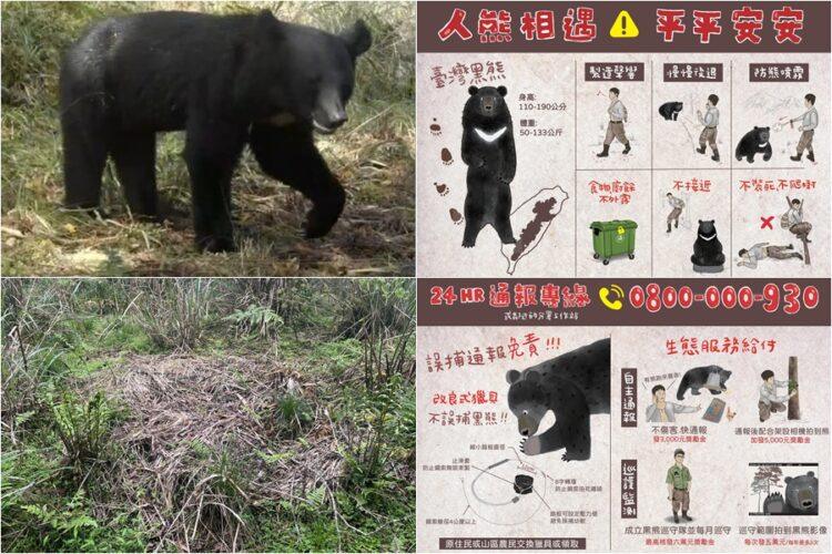 宜蘭分署提醒山區農友與部落族人,如有防治獸害或傳統狩獵需求,請洽宜蘭分署免費換發或申領可避免誤捕黑熊的改良式獵具;誤捕臺灣黑熊,只要立即通報協助救援,即不會咎責,發現黑熊入侵或受困,請在確認自身安全後,立即撥打1999或林業保育署免付費專線0800-000-930(您您您救山林)。