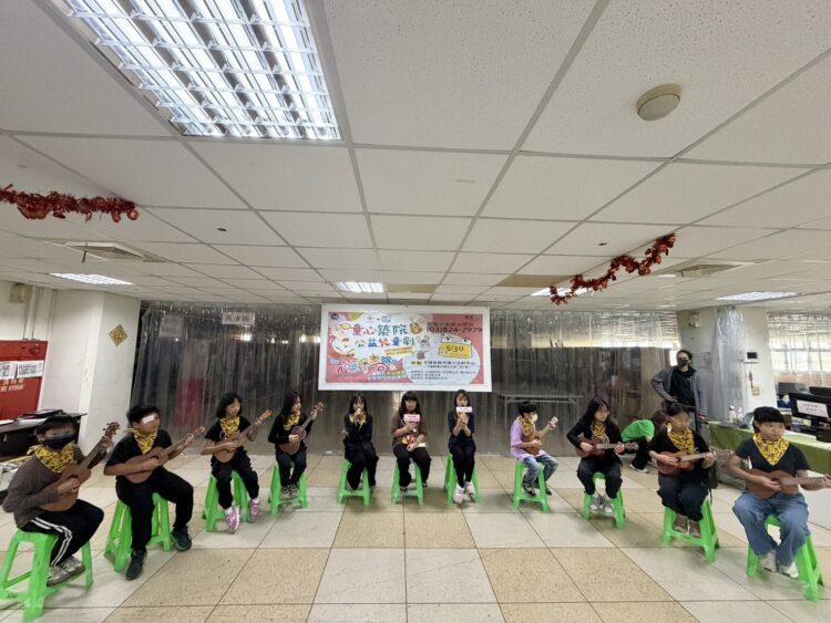 光華國小學童烏克麗麗表演揭開序幕後, 校長游彥中現場代表捐款,表示這筆款項是學校舉辦跳蚤市場,全校師生討論後,將8個攤位所得捐出,期盼在孩子們心中播撒的善的種子,能具體落實學校推動生命與品格教育的苦心。