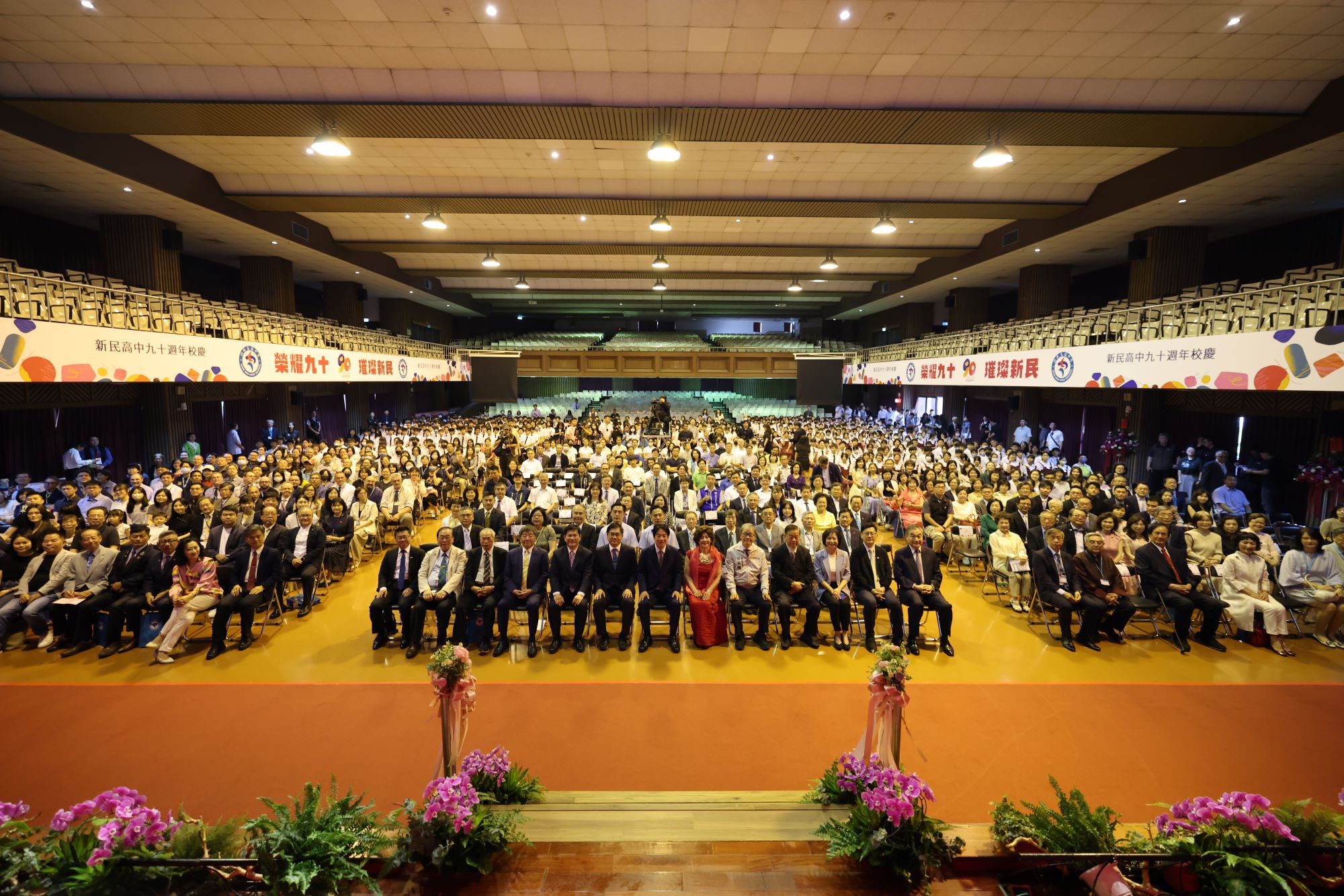 新民高中4月18日舉行創校90週年校慶慶祝大會,以「榮耀九十・璀璨新民」為主題,總統親臨致詞祝賀,現場匯聚中央、地方重要貴賓、國際來賓、校友及全體師生,共同見證新民九十年來的重要里程碑,氣氛隆重而熱烈。