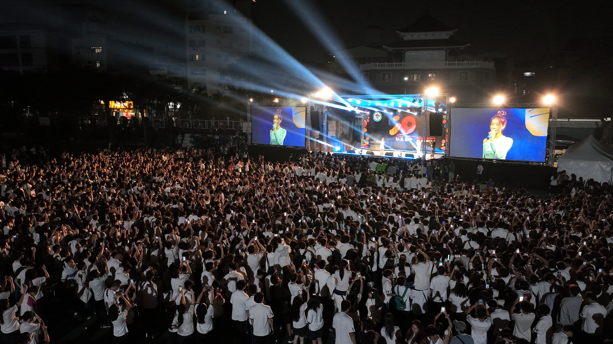 其中,歌手PIZZALI為新民高中觀光事業科畢業校友,回到母校參與首次校園演唱會演出,表示深感榮幸與感動,並帶領現場觀眾齊唱校歌,勾起與師長及同學相處的美好回憶,場面溫馨感人。演唱會在璀璨煙火中畫下完美句點,照亮夜空,也再次映照出「榮耀九十・璀璨新民」的動人時刻。(照片/記者廖家賢翻攝)