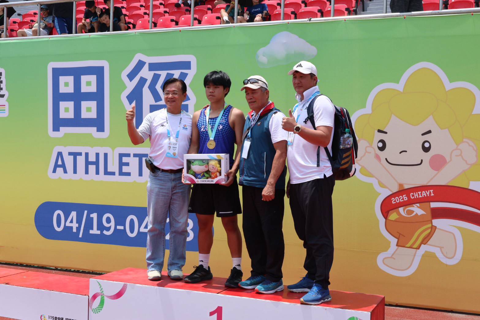 本屆賽事中,選手表現亮眼,有1項創下大會紀錄、2項破大會紀錄,最受矚目的亮點之一為光復國中田佳恩在國男組標槍(700公克)項目勇奪金牌並創下大會紀錄。面對新制標槍規格的挑戰,他仍能突破自我,展現優異實力。回顧其訓練歷程,學校曾遭馬太鞍水災重創,訓練資源一度匱乏,但師生仍在困境中堅持不懈。隨著相關補助到位,校方積極復原場地並辦理器材採購補充器材,確保訓練品質,最終在全中運一舉奪金並創下大會紀錄。教練陳緯皓與鄭萬富表示,其穩定的訓練態度與堅定意志是成功關鍵,這面金牌也象徵團隊在逆境中的重生。