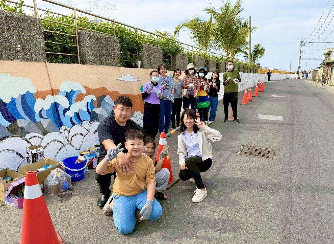 整體彩繪以「家鄉故鄉」為主軸,內容橫跨時代脈絡,從早年討海生活的「驚滔駭浪」,呈現先民面對海洋的艱辛與勇氣;到「靈威守護」描繪地方信仰文化,寄託對出海平安的祈願;再到「漁躍港灣」,展現當代漁業發展與烏魚產業興盛的榮景。最終由學生創作「海洋永續」篇章,融入聯合國永續發展目標(SDGs)理念,為這條歷史長廊注入未來視野與環境意識。
