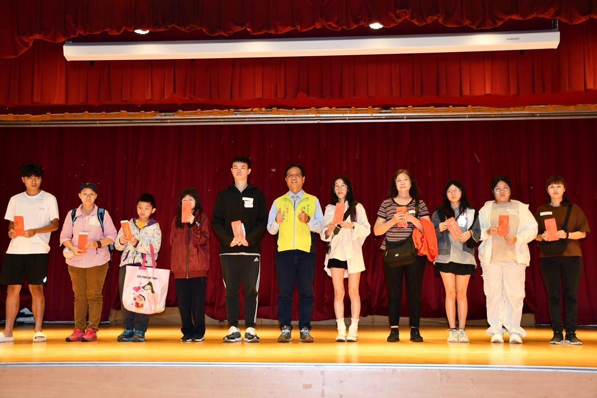 市長林世賢同時期勉獲頒教育補助費的同學們,即使經濟狀況不好,也要每天心存善念,要堅持保持快樂的心情,有能力時多幫助其他更困苦或弱勢的族群,同時一定要孝順父母;另外,要認真求學與做事。