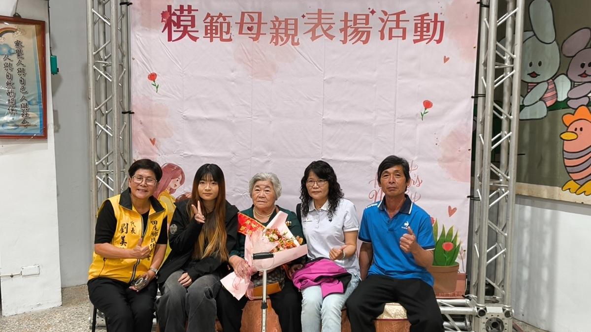 其中,福田村曹許梅女士更榮獲本鄉縣模範母親代表,她多年來對家庭的付出與對社區公益的熱情參與,贏得了鄉親的一致讚譽,尤其對地方事務的投入,出錢又出力,擔任福田社區長壽俱樂部會長、社區環保志工隊隊員、順天宮誦經生40餘年,經常性捐贈福田村急難救助與喪葬捐助,子女受其影響也都熱心公益,今年獲此殊榮,更是對她多年來對家庭和社會的無私奉獻和貢獻的肯定和表揚。