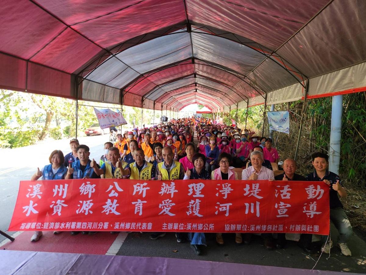 溪州鄉公所與經濟部水利署第四河川分署,於今(26)日上午於溪州鄉水尾村西螺大橋北岸堤防邊,辦理第十次聯合淨堤活動,並號召鄉內300位社區社團環保志工共同參與。活動先由河川分署及清潔隊進行環保宣導及有獎徵答活動,在全體人員誓師後,分成三組路線同時進行,將堤防附近的周邊垃圾清理乾淨。
