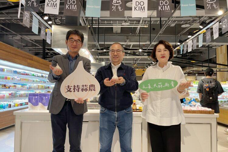 劉建國委員現場也化身最佳元長鄉大蒜代言人,與微風超市西川正史總經理、李明明鄉長共同將國產大蒜結合醃梅及紫蘇,推出日式風味拌蒜,有別於傳統糖蒜作法,風味更加豐富美味,並推動現場消費者試吃品嚐,獲得熱烈回響。劉建國委員指出,在今年蒜頭採收季節蒜農遭受到風災以及高溫的侵擾,部分產區的蒜球無法正常膨大,小球率較高,甚至有出現裂辦的狀況,在第一時間已會同農糧署中區分署實地勘查蒜田,了解實際災損情形,啟動相關因應措施,協助農民度過難關,目前距離「專案變更申報」,截止日期至4月30日還有2天,請還有需求的鄉親農友們把握時間。